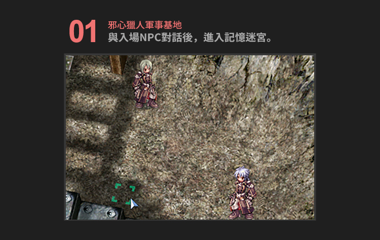 01.邪心獵人軍事基地與入場NPC對話後,進入記憶迷宮。